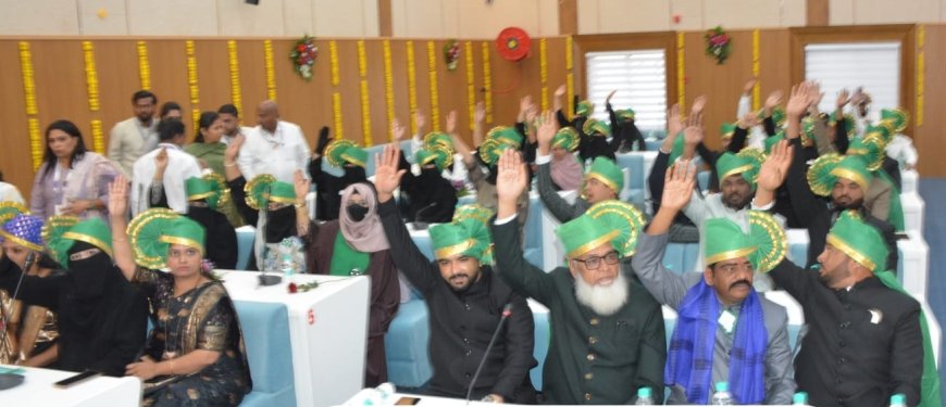 आज मंगळवारी सकाळी 10.45 वाजता एमआयएमच्या (मजलिस-ए-इत्तेहादूल मुस्लिमीन) पक्षाचे नगरसेवकांचे सर्वात आधी महापालिकेत आगमन झाले. त्यांनी शेरवानी परिधान करत, हिरवा फेटा, पक्षाची पतंग निशानी लावून "नारे तकबीर अल्लाहु अकबर", ओवेसी, इम्तियाज जलील तुम आगे बढो हम तुम्हारे साथ है घोषणाबाजी केरत पायी महापालिका मुख्यालयात दाखल झाले. महीला नगरसेवकांनी बुरखा परिधान करत डोक्यावर हिरवा फेटा बांधून आगमन झाले.