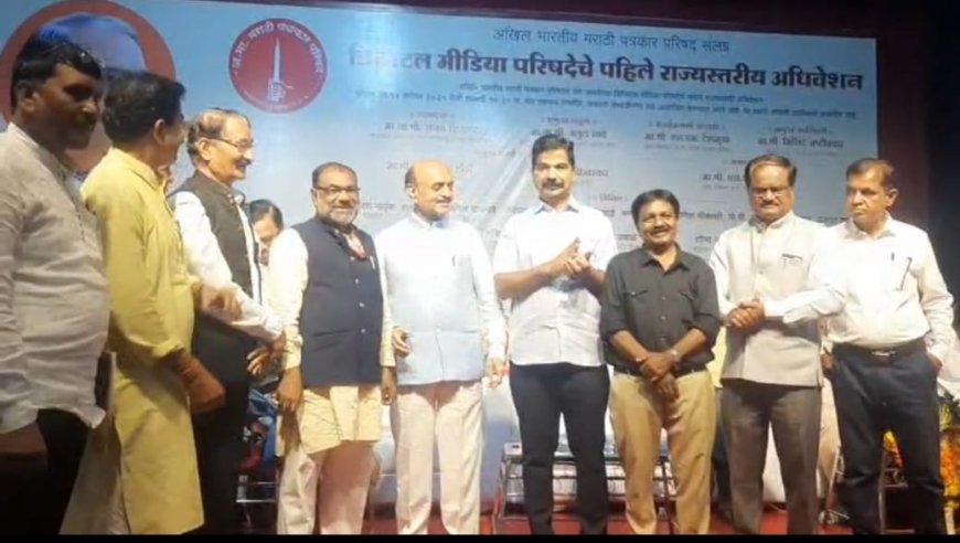 छत्रपती संभाजीनगर (औरंगाबाद), दि.14(डि-24 न्यूज) - अखिल भारतीय मराठी पत्रकार परिषद संलग्न डिजिटल मीडीया परिषद पहिले राज्यस्तरीय अधिवेशन आज 14 सप्टेंबर रोजी संत एकनाथ रंगमंदीर येथे आयोजित करण्यात आले होते. नवीन तंत्रज्ञान आत्मसात करून मागिल पाच वर्षांपासून ताज्या बातम्या मराठी वेबपोर्टल डि-24 न्यूजने वाचकांच्या मनात सोशल मीडियावर वेगळा ठसा उमटवला आहे. डिजिटल पत्रकारीतेमध्ये उल्लेखनीय कार्य केल्याबद्दल मान्यवरांच्या हस्ते स्मृतिचिन्ह, शाल, श्रीफळ देऊन जेष्ठ पत्रकार आरेफ देशमुख यांना यावेळी सन्मानित करण्यात आले. याप्रसंगी अखिल भारतीय मराठी पत्रकार परिषदेचे मुख्य विश्वस्त एस.एम.देशमुख, राज्यसभेचे खासदार डॉ.भागवत कराड, अखिल भारतीय मराठी परिषदेचे अध्यक्ष मिलिंद अष्टिवकर, जेष्ठ संपादक तुळशीराम भोईटे, अभिव्यक्ती न्यूज चॅनलचे रवींद्र पोखरकर, विश्वस्त किरण नाईक, विश्वस्त शरद पाबळे, अध्यक्ष अनिल वाघमारे, कार्याध्यक्ष शिवराज काटकर, कार्याध्यक्ष सुरेश नाईकवाडे, कोषाध्यक्ष मन्सूर भाई शेख, गणेश मोकाशी, गो.पी.लांडगे, हेमंत वणजू, प्रकाश कांबळे, जिल्हाध्यक्ष बालाजी सुर्यवंशी, मुंबई प्रतिनिधी सुनील वाघमारे, सचिव प्रकाश भगनुरे, उपाध्यक्ष महादेव जामनिक, उपाध्यक्ष ब्रम्हानंद चक्करवार, कार्याध्यक्ष कानिफ अन्नपुर्णे यांची उपस्थिती होती. सन्मान मिळाल्याबद्दल मिळाल्याबद्दल पत्रकारीता क्षेत्रात अभिनंदन केले जात आहे.