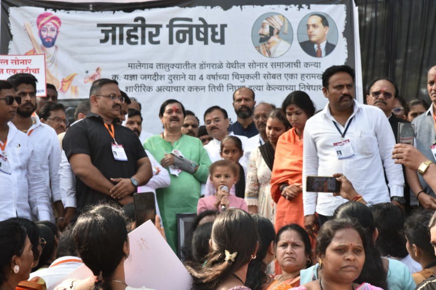 मालेगाव चिमुकलीच्या अत्याचार व हत्येप्रकरणी दोषीला फाशीच्या मागणीसाठी काढला भव्य आक्रोश मोर्चा...