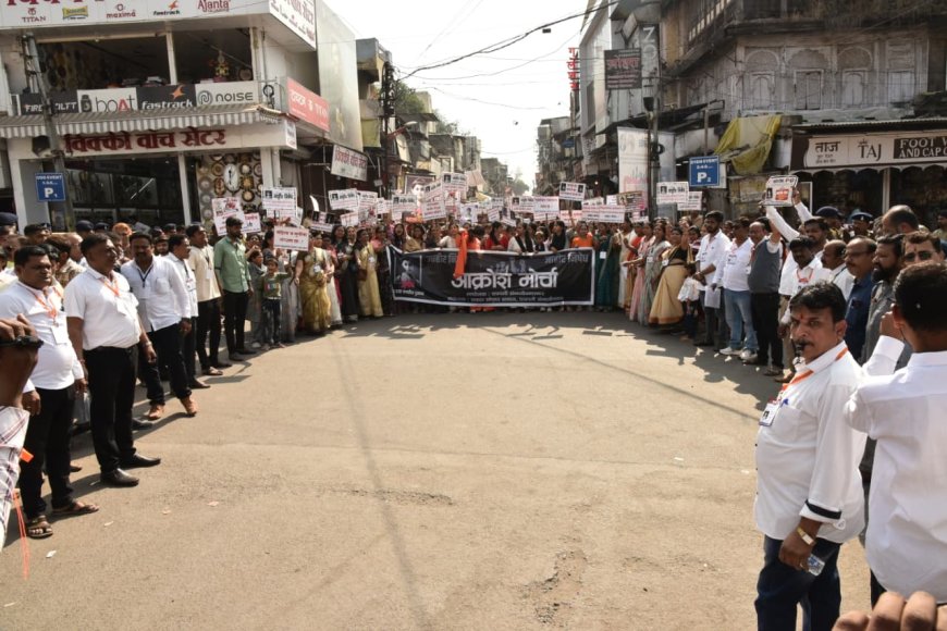 फास्ट ट्रॅक खटला चालवून आरोपीला त्वरित फाशी देण्याची शासनाकडे आग्रही मागणी... आमदार प्रदीप जैस्वाल, शिवसेनेचे जिल्हाप्रमुख राजेंद्र जंजाळ मोर्चात चालले...
