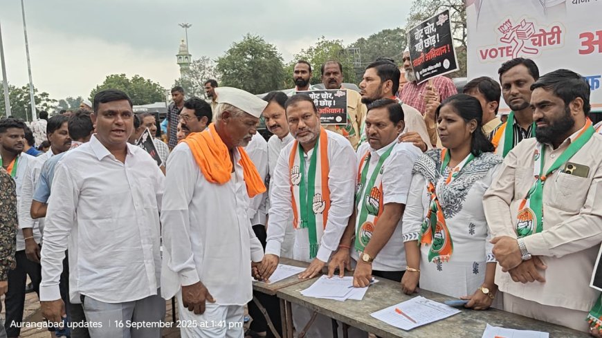 छत्रपती संभाजीनगर (औरंगाबाद), दि.16(डि-24 न्यूज) - अखिल भारतीय काँग्रेस कमिटीच्या निर्देशानुसार व महाराष्ट्र प्रदेश काँग्रेस कमिटीचे अध्यक्ष हर्षवर्धन सपकाळ यांच्या सूचनेनुसार छत्रपती संभाजीनगर शहर जिल्हा काँग्रेस कमिटी तर्फे शहर जिल्हाध्यक्ष शेख युसूफ यांच्या नेतृत्वाखाली रेल्वे स्थानकावर "वोट चोरी विरोधी स्वाक्षरी मोहीम" आयोजित करण्यात आली होती. ज्यात सर्वसामान्य नागरिकांतर्फे मोठ्या प्रमाणावर प्रतिसाद मिळाला.