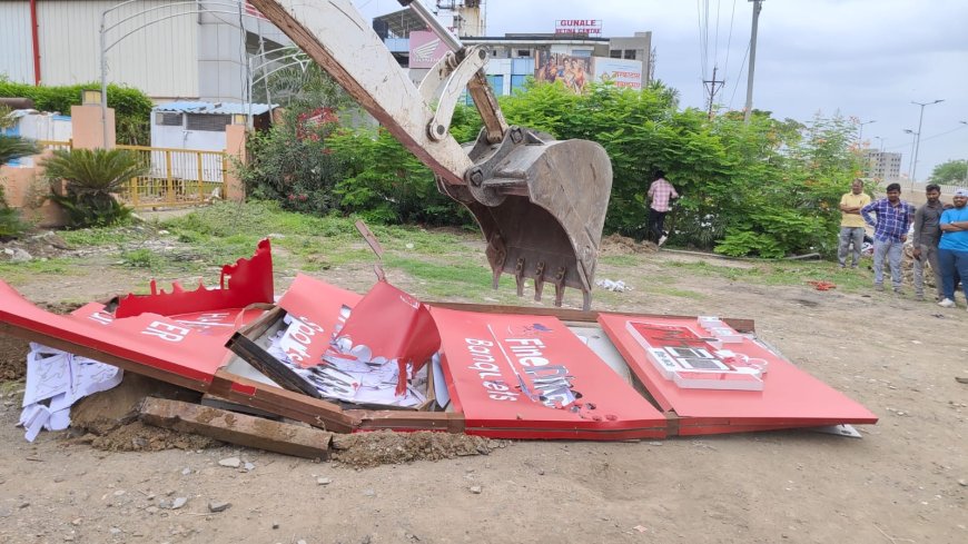 मनपाच्या अतिक्रमण विभागाने 20 फुट बाय 20 महाकाय होर्डिंग पाडले, 3.5 टन लोखंड जप्त